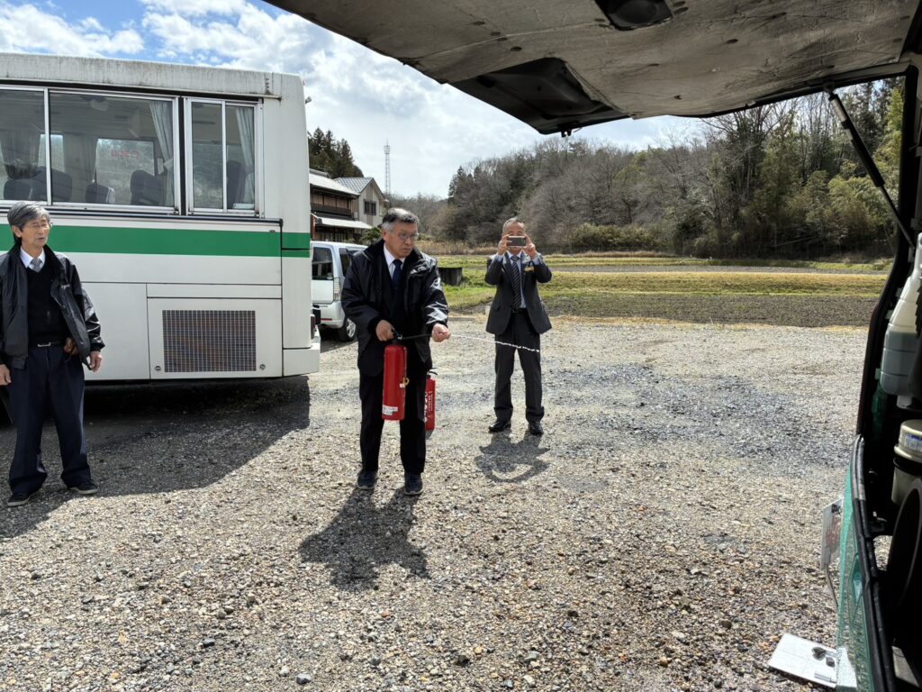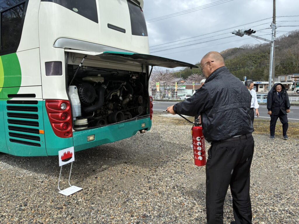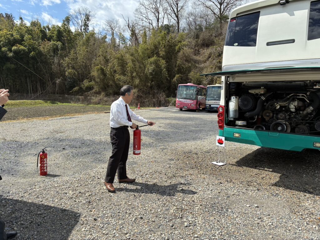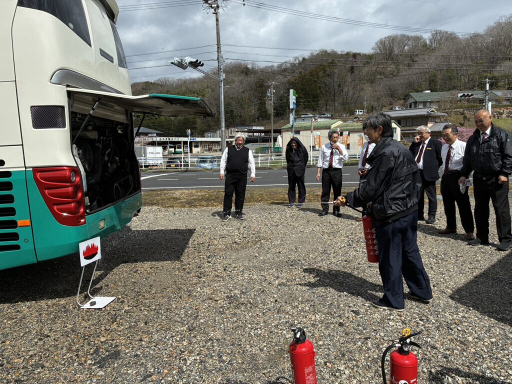 バス車両火災訓練を行いました🧯 2026年03月31日 今回は、車両火災が発生したと想定した初動措置、初期消火訓練を行いました🧯お客様の安全を最優先に迅速に安全に避難していただくための案内や誘導の訓練を今後も定期的に実施して参ります!